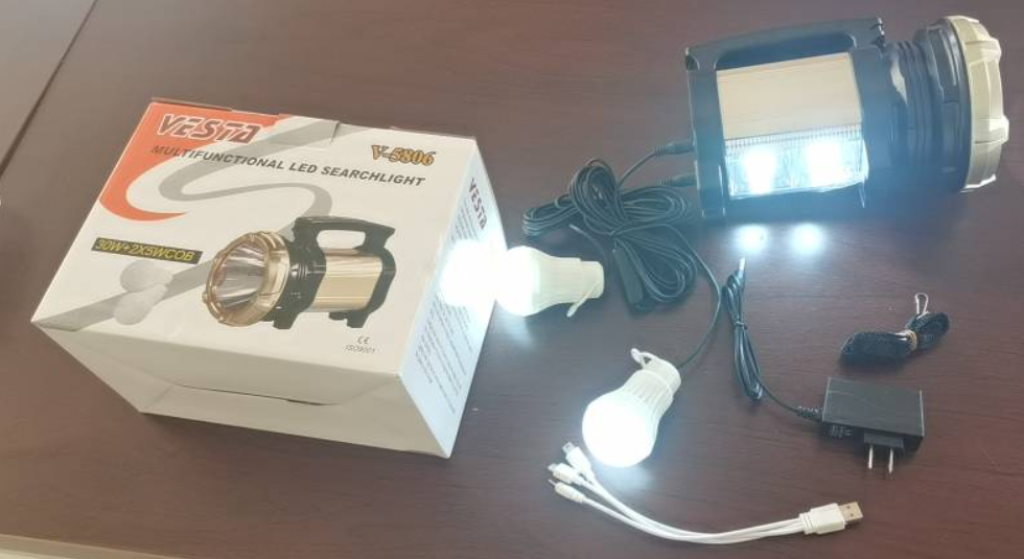 Основними перевагами ліхтаря-прожектора є висока якість, яскраві LED елементи, зручна ручка та доступна вартість. Ліхтар оснащений додатковою панеллю ближнього розсіяного світла на 20 COB елементів. Завдяки наявності USB порту його можна використовувати як Power Bank. Автономне джерело світла – це не тільки зручність, а й найголовніше – Ваша безпека!