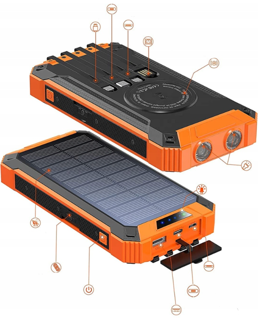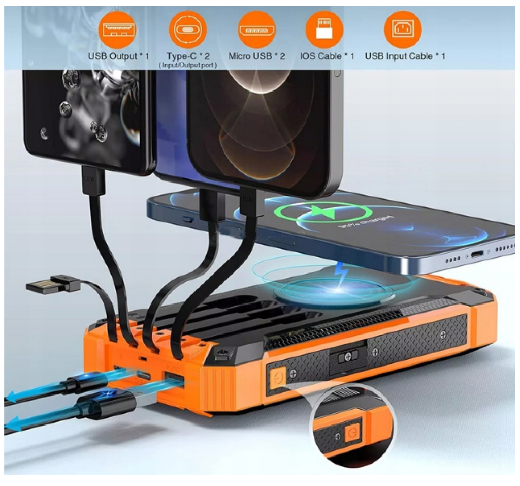 Світлодіодний індикатор заряду повербанка, сонячна зарядка, бездротова (індуктивна) зарядка.