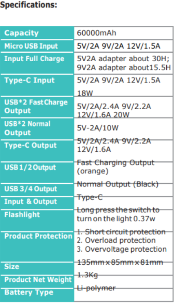 Багатофункціональний пристрій, який буде працювати в будь-яких умовах, завдяки ємності акумулятора 60000 мАч.