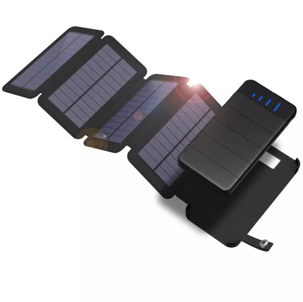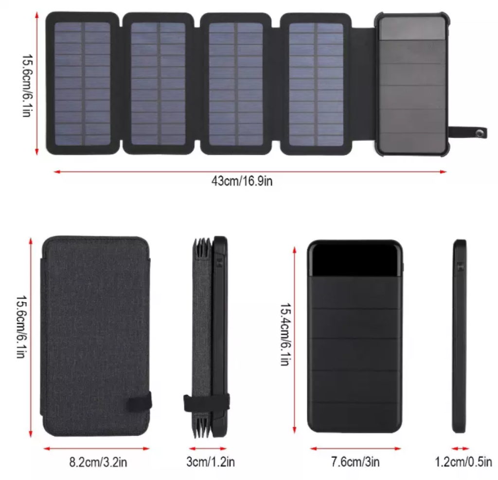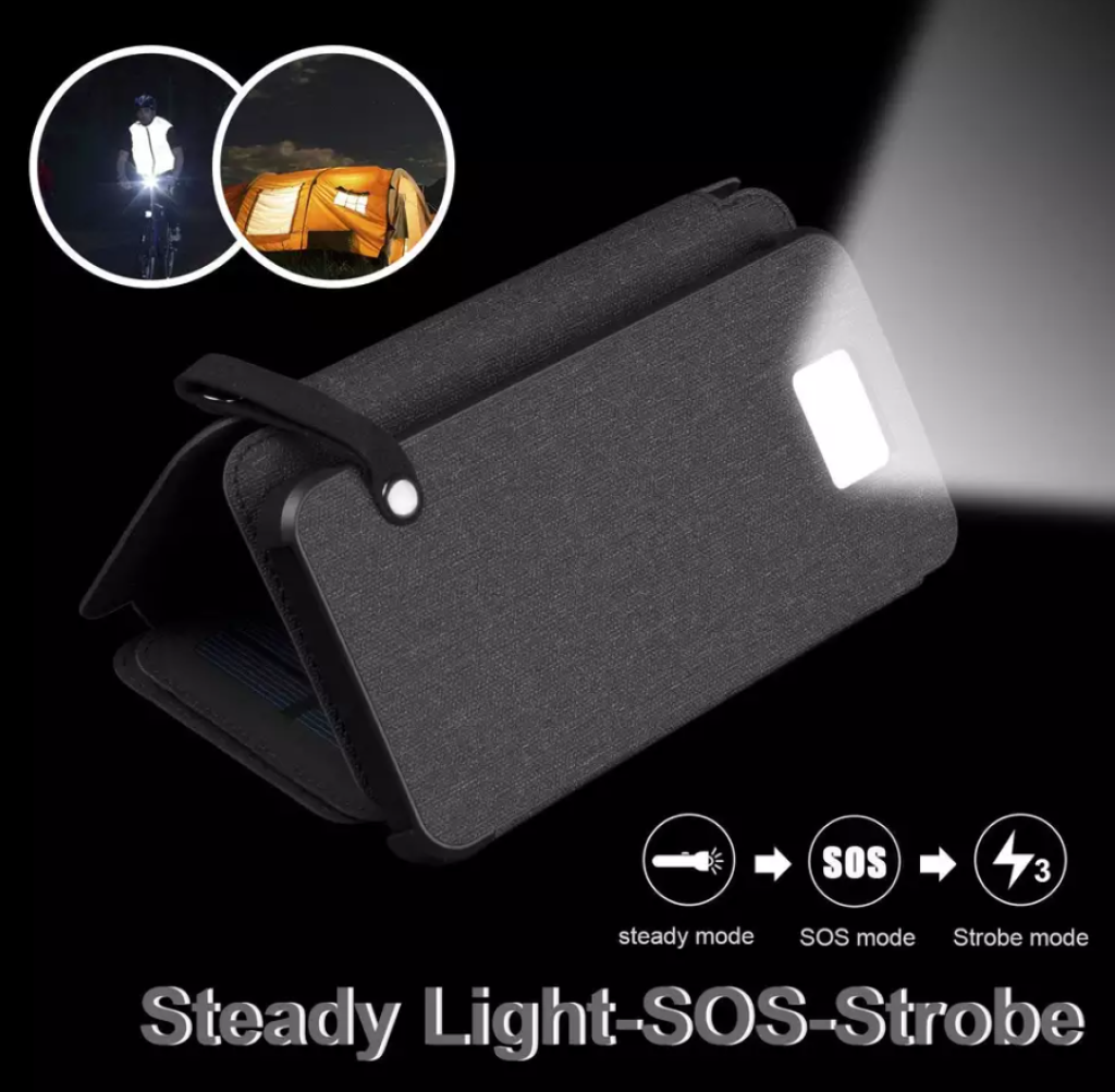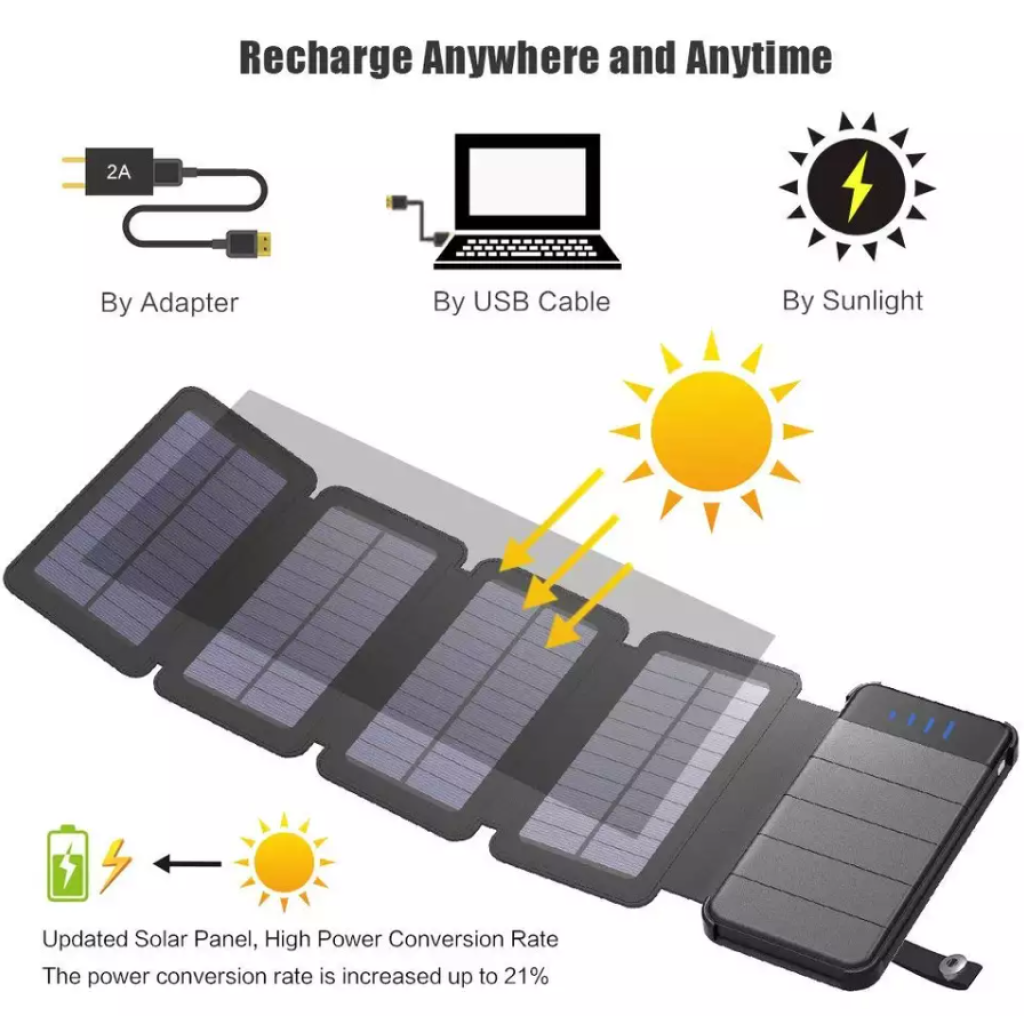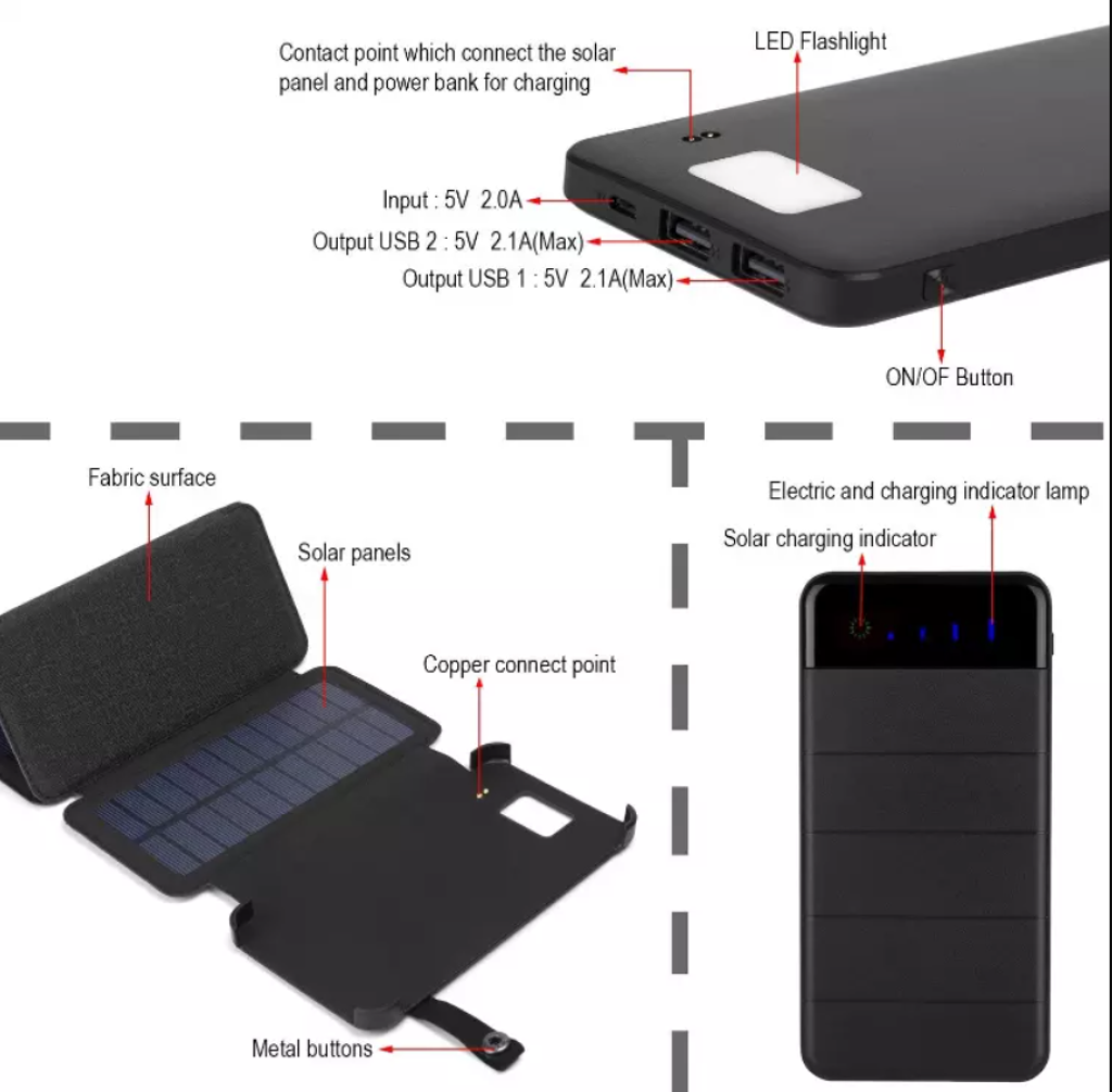 Модель powerbank з яскравим світлодіодним ліхтариком та 3 розкладними сонячними панелями. Відмінно підходить для туризму, поїздок, подорожей чи екскурсій)