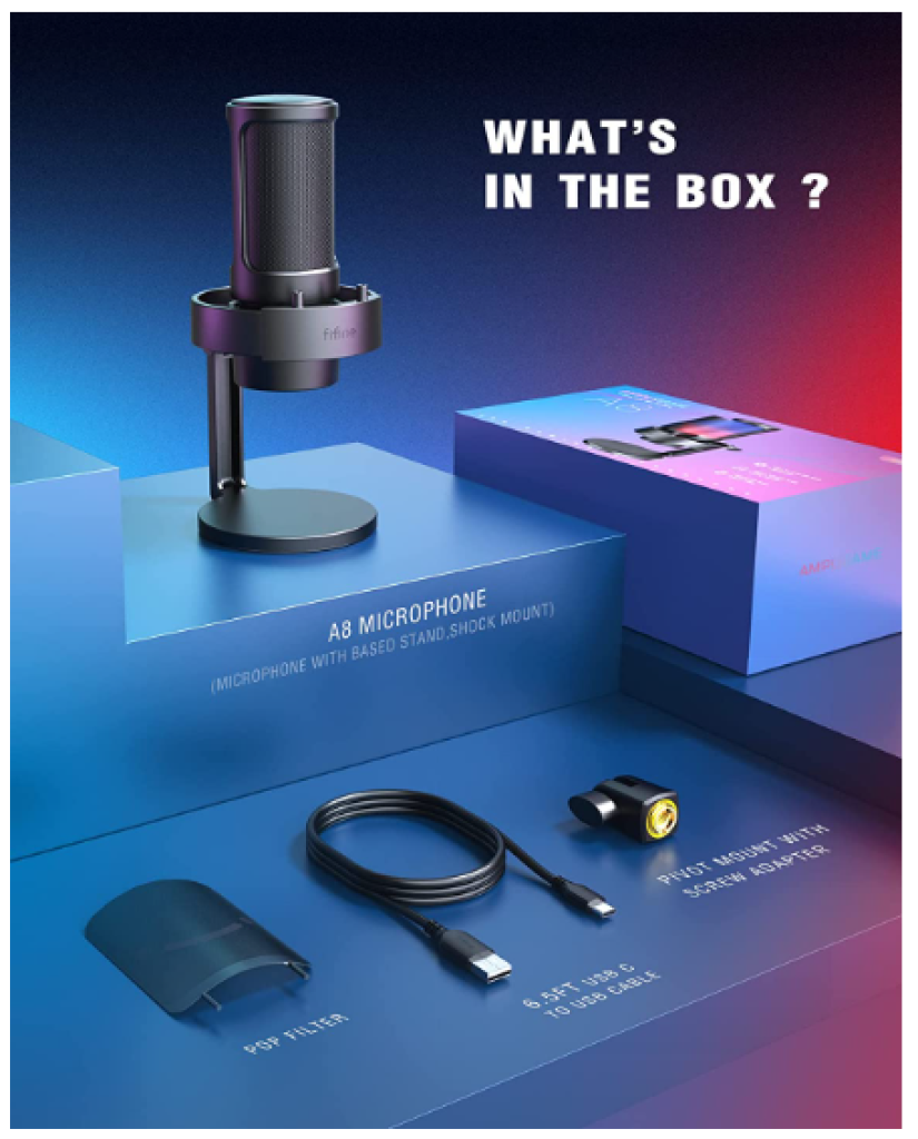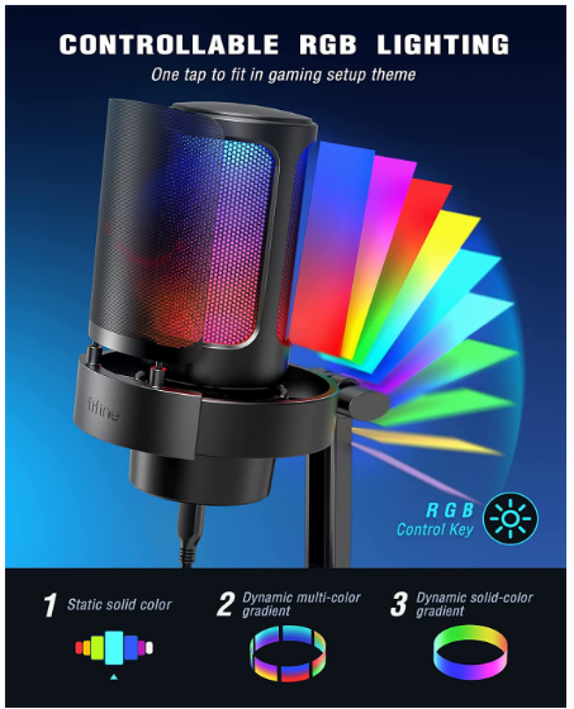 FIFINE AmpliGame A8 - відмінний мікрофон для стрімінгу та геймінгу з RGB підсвічуванням, приголомшливим звучанням та технологією Plug&Play. Довгоочікуване додавання type-c, який зручно використовувати, полегшує роботу з пристроєм.