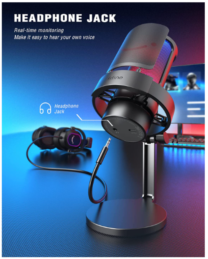Fifine A8 Професійний студійний мікрофон для запису Usb Type-C Conedenser Microphone RGB Gaming Microphone USB RGB-мікрофон, настільний, амортизуючий, провідний з можливістю підключення навушників.