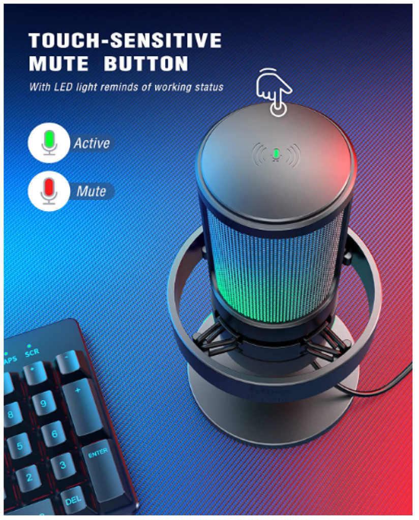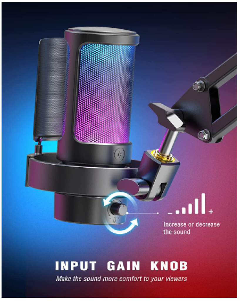 Зручний дизайн не обмежується лише аксесуарами. Швидке відключення звуку, світлодіодний індикатор та фізичний циферблат посилення роблять користування мікрофоном Fifine AmpliGame максимально комфортним.