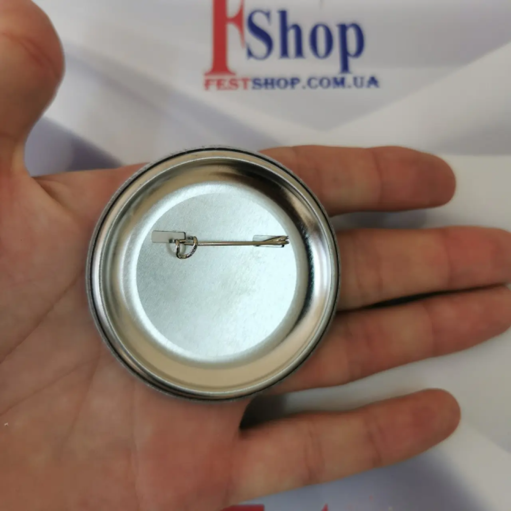 Закатні значки діаметром 58мм. із кріпленням на шпильці. Металеві картинка покрита лавсановой плівкою, яка захищає картинку від зовнішніх впливів.