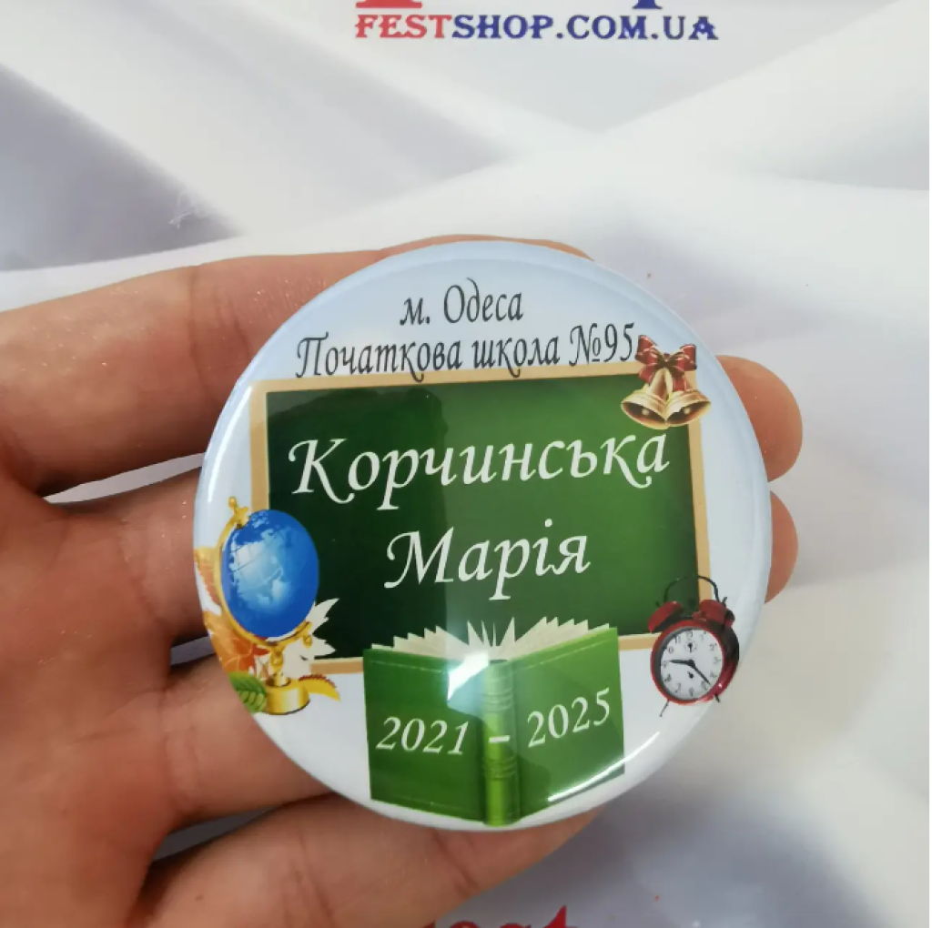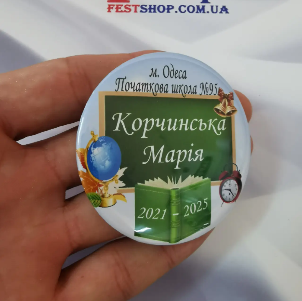 Значок першокласнику – незамінний атрибут на перший дзвінок. Він підкреслить вашу індивідуальність, зробить фотографії вашого першокласника оригінальними.