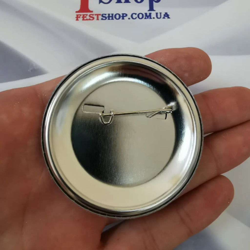 Закатні значки діаметром 58мм. із кріпленням на шпильці. Металеві картинка покрита лавсановой плівкою, яка захищає картинку від зовнішніх впливів.